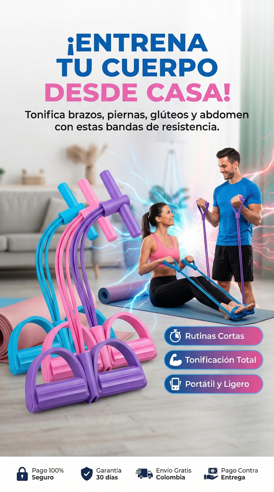 El Multi Function Puller / Pedal Rally es un ejercitador elástico multifuncional diseñado para entrenar en casa o en cualquier lugar. Gracias a su sistema de resistencia con bandas elásticas y pedales antideslizantes, permite trabajar brazos, abdomen, piernas y glúteos de manera práctica y efectiva. Su diseño ligero, portátil y ergonómico lo convierte en el accesorio ideal para ejercicios de yoga, pilates, tonificación muscular y rehabilitación física.